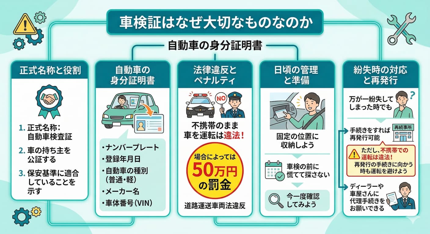 車検証:車両の情報確認のために必要です。