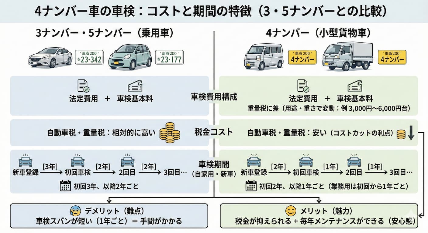 4ナンバー車の特徴や車検時にかかるコストの違いは何か?基礎知識
